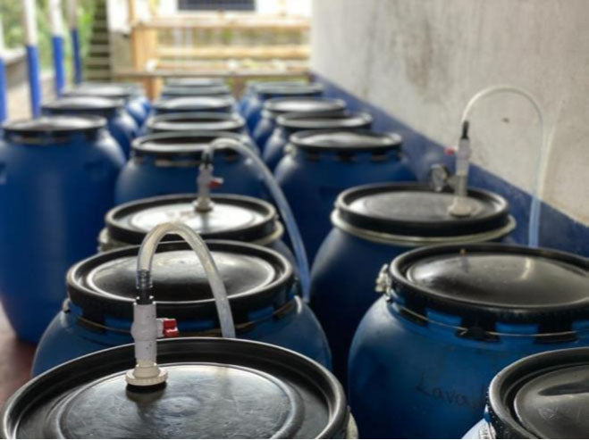 For the Caturra Wine Yeast process, coffee is fermented twice anaerobically. The first step is to seal the coffee cherries inside 200L plastic cans for 180hrs at a constant temperature of 18 ° C, adding wine yeasts.